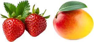Mangue, fraises et mix de jus de fruits